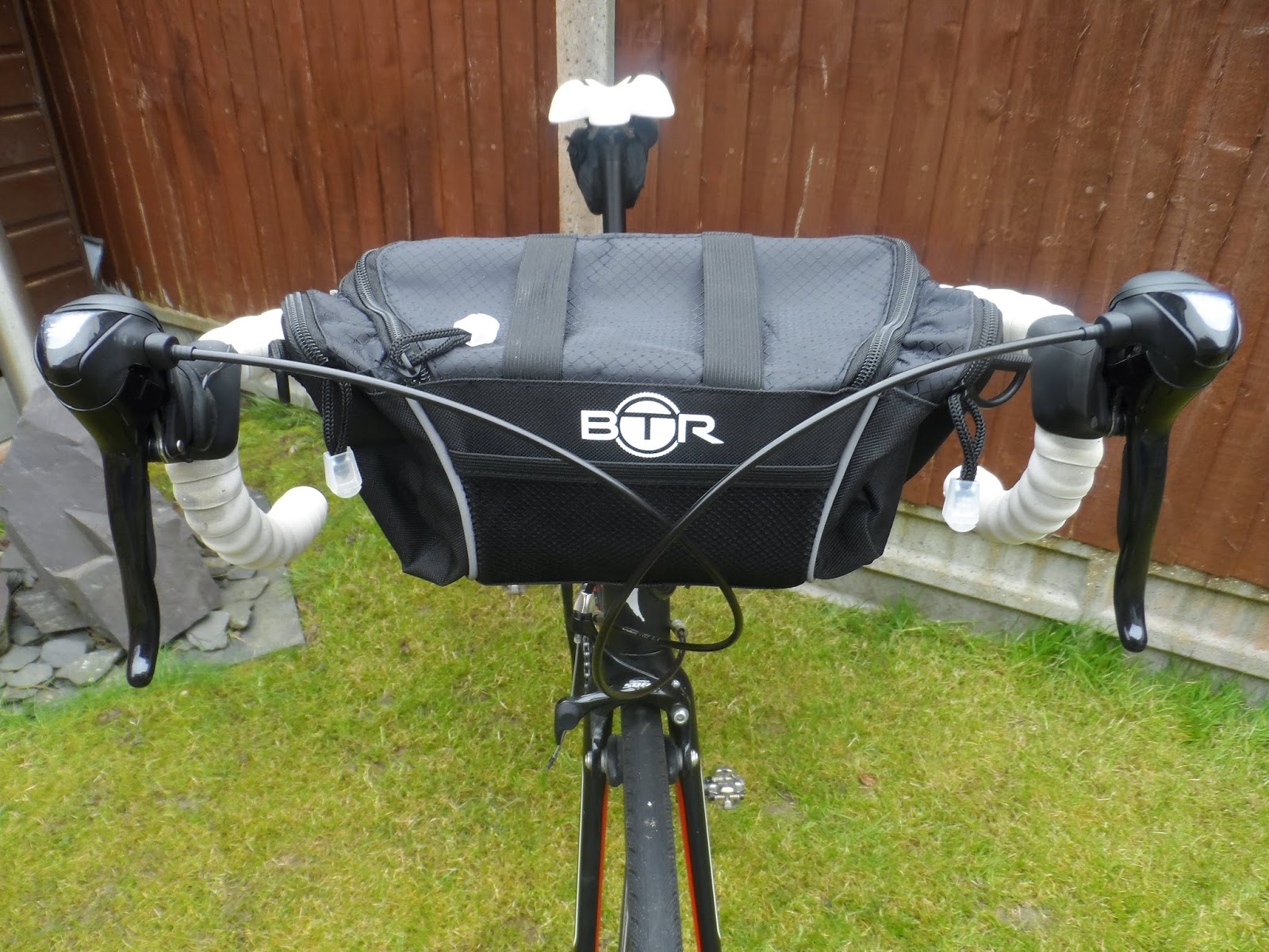 The review I will be doing this time is for a Handlebar Bag from a company called "BTR" Direct, which are based in East Sussex, [do have a look a look at their website, it has many other cycling accessories at really advantageous prices!] well on with the review of the Handlebar Bag, this bag sits on the front handle bars of your bike and depending on your brake cables this will determine how well it is placed on the front bar.